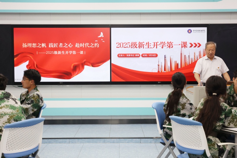 为帮助2025级新生更好地理解时代使命、明确奋斗目标,9月18日,学校党委书记薛辉以《扬理想之帆 践匠者之心 赴时代之约》为题,在学校智慧教室为2025级新生讲授“开学第一课”,部分新生代表现场聆听,其余2025级新生通过线上学习的方式进行观看,实现全覆盖学习。