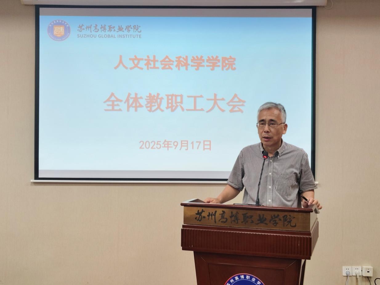 9月17日下午,人文社会科学学院在行政楼215会议室召开2025年秋季学期全体教职工大会。院党政班子成员、特聘教授以及全体教职工参加了会议。会议由校长助理、学院院长黄兴主持。