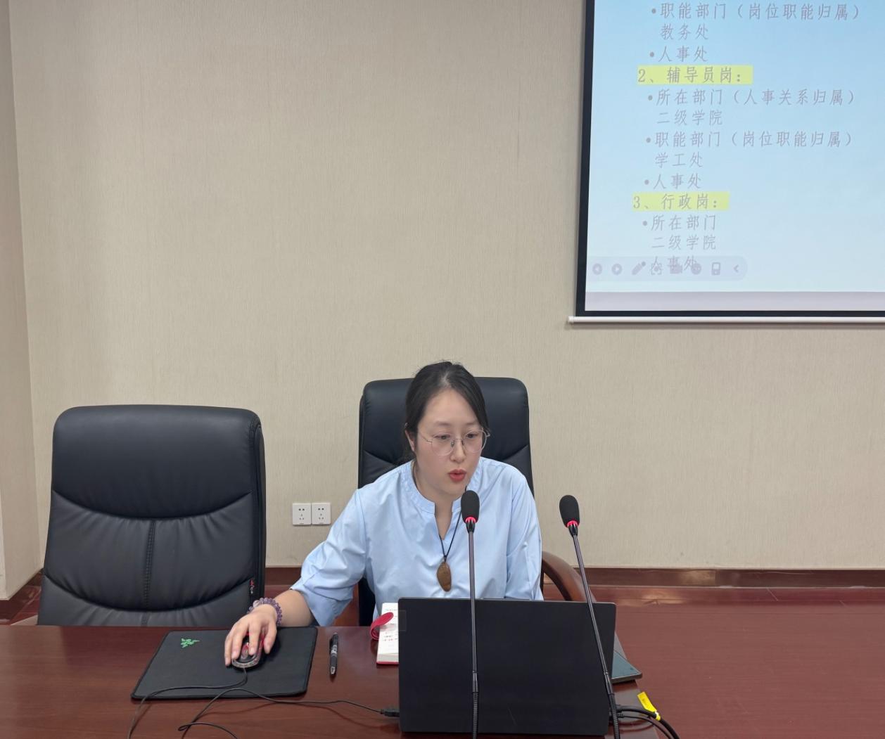 会上,学院办公室主任侯宇晨围绕职称晋升、“双师”评聘、企业实践以及请假、调停课等管理制度和办事流程等相关内容作了讲解,提醒老师们要及时关注并正确领会学校出台相关文件和管理规定,熟悉相关工作的办事流程、时间节点等,教师同时要明晰职业规划,促进个人成长发展。