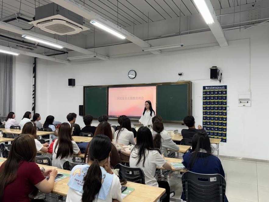9月24日,国际商学院在新校区教学楼组织全体大一新生开展国庆假期安全教育主题班会,旨在增强学生安全意识,确保假期人身及财产安全。班会由各班级辅导员主持,全面普及安全知识,筑牢校园安全防线。