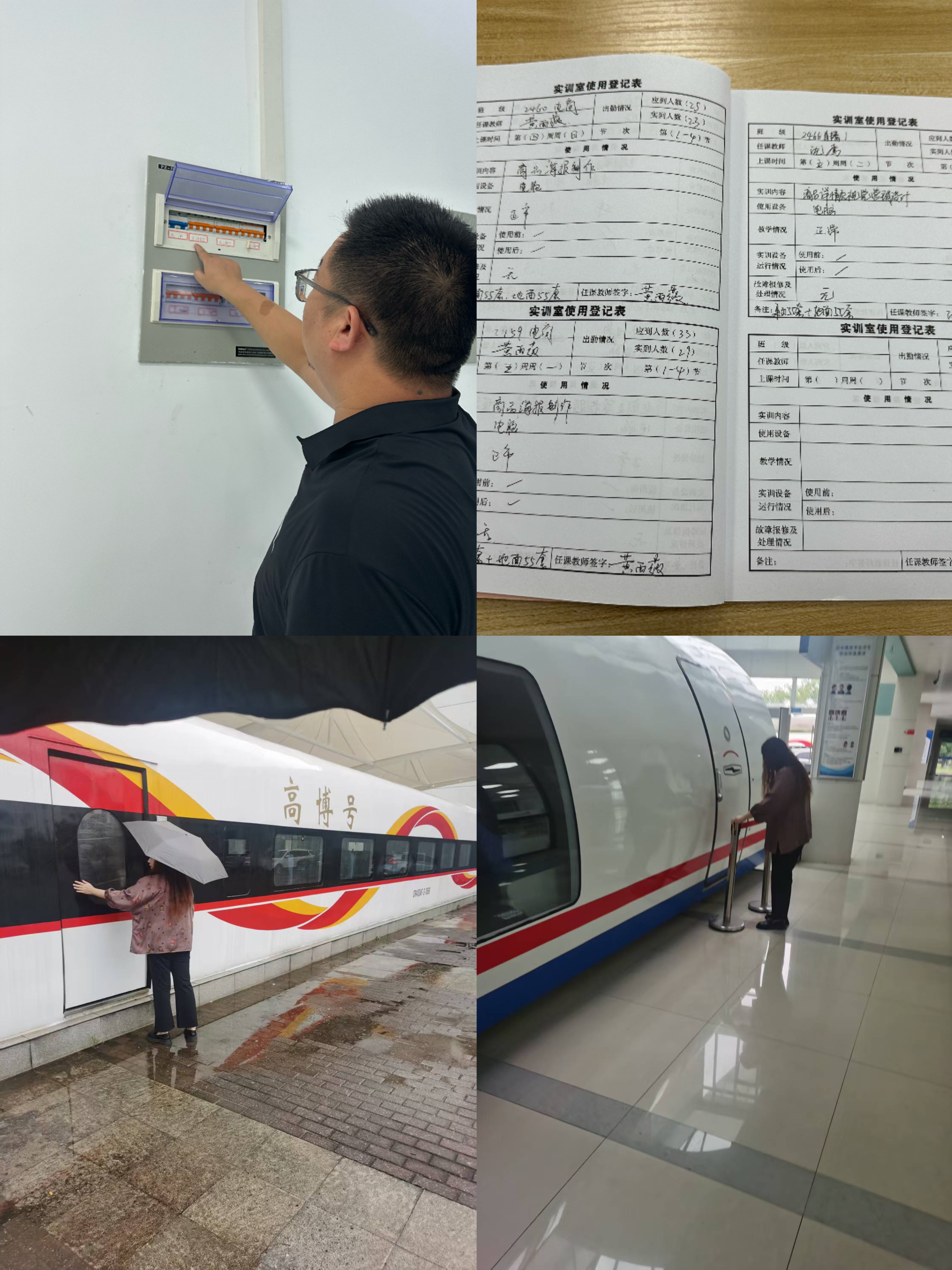 检查围绕六大核心环节展开:一是核查《实训室使用手册》,确保设备使用、维护等关键信息填写完整、无遗漏,为后续管理留存清晰依据;二是排查窗户安全,逐扇确认锁闭牢固,严防雨水渗入、物品坠落及无关人员进入;三是规范窗帘操作,要求全部拉合,避免阳光直射加速设备老化;四是严格电源管理,关闭设备、照明等非必要电源,消除电气火灾隐患;五是强化门锁检查,锁闭后二次确认,守护财物与设备安全;六是关注整体环境卫生,要求保持通道畅通、设备与台面整洁,杜绝消防安全隐患。