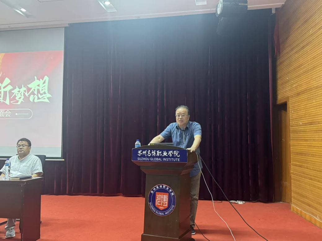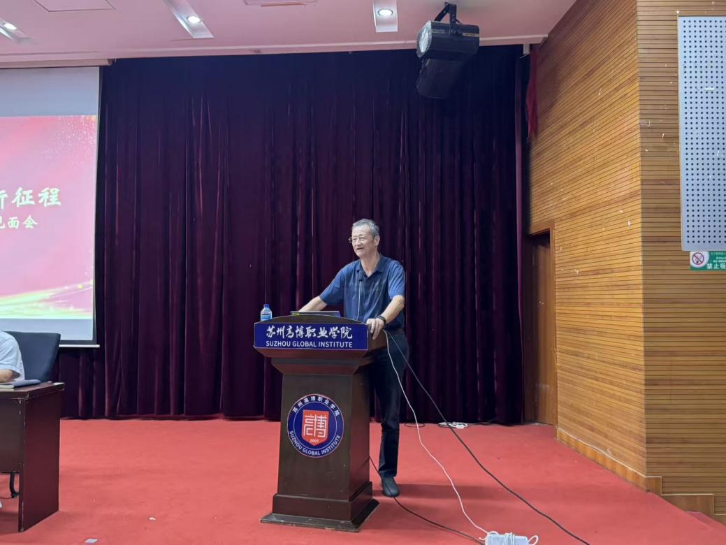 见面会的第四环节,苏州高博职业学院副校长周肖兴发表讲话。周校长结合当前行业发展趋势,强调了实践能力与创新思维在职业发展中的重要性,将理论知识与实际应用紧密结合。同时,周校长也表达了对新生们的美好祝愿,希望大家在大学生活中不仅能收获知识与技能,更能培养独立思考和解决问题的能力,成长为符合时代发展需要的高素质技术人才。
