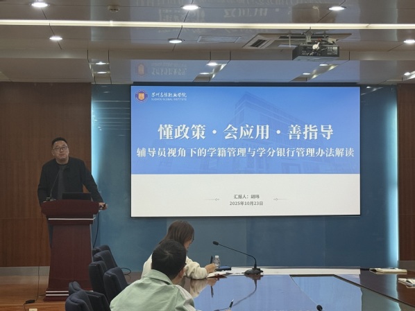 培训首先由教务处常务副处长胡玮主讲,围绕“懂政策・会应用・善指导:辅导员视角下的学籍管理与学分银行管理办法解读”,结合辅导员工作实际,系统梳理学籍管理关键要点,详细解读学分银行管理办法核心内容。胡处长通过列举事例与实务指导,帮助参训辅导员精准把握政策要求,提升政策应用与学生指导能力,为规范开展学籍相关工作奠定基础。