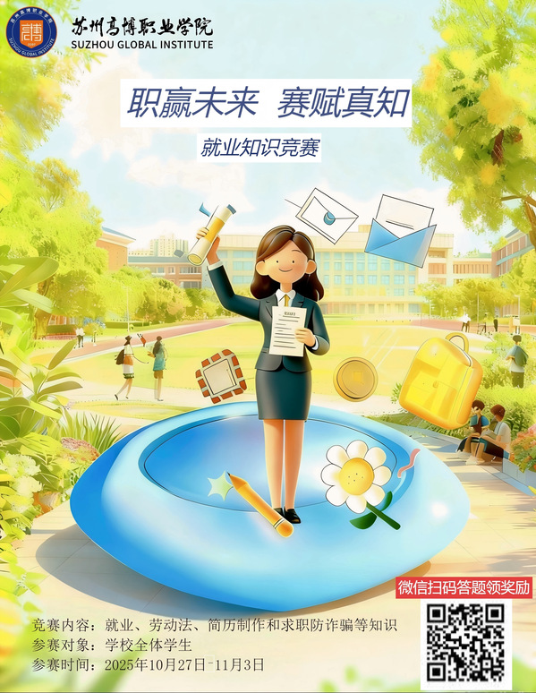 为进一步提升我校学生就业知识储备,增强职场权益保护意识,帮助同学们提前熟悉就业流程、规避求职风险,切实提升就业竞争力,学校决定举办“职赢未来,赛赋真知” 线上就业知识竞赛。现将具体事宜通知如下: