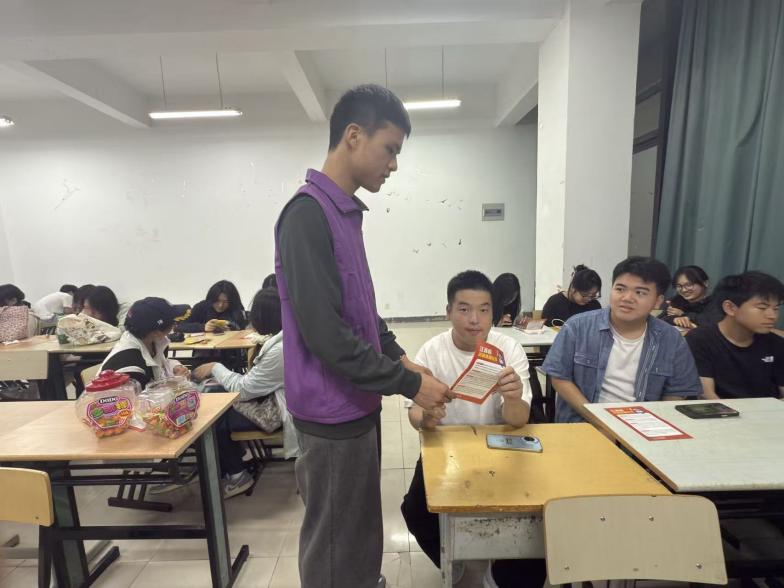 同时,各班现场发放《学生资助政策宣传单》,宣传单以清晰的图文排版,系统梳理了各项政策的核心内容,方便学生随时查阅。“纸质宣传单很实用,关键信息一目了然,课后可以慢慢琢磨。”参与班会的学生表示,这种“面对面讲解+书面资料辅助”的形式,让大家对资助政策有了更全面、深入地了解,也感受到了学院的细致关怀。
