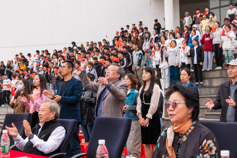 最后,全场齐声高唱《歌唱祖国》将整场汇演推向最高潮。在雄壮激昂的旋律中,师生们全体起立,挥舞着手中的五星红旗,用最嘹亮的歌声向伟大祖国深情告白。歌声如潮,回荡校园,唱出了全体高博人对祖国的无限热爱,也唱响了新时代青年为实现中华民族伟大复兴接续奋斗的豪迈誓言。