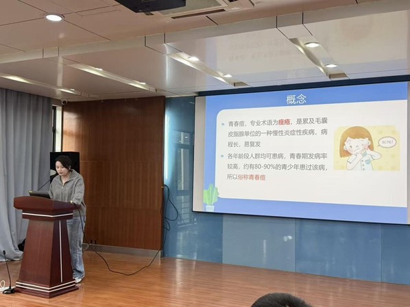 随后,医生聚焦青年群体高发的痤疮问题,深入解析了这一毛囊皮脂腺慢性炎症性疾病的发病机制。针对学子关心的皮肤护理与治疗问题,医生结合临床经验,从膳食调理、日常清洁、作息管理等方面给出了具体建议。