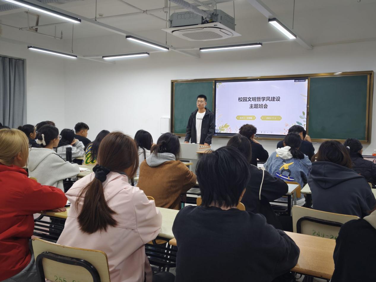 11月3日晚,国际商学院在2025级晚自习教室开展了“校园文明暨学风建设”主题班会。学院学生办公室主任杜相锋,辅导员吕林峰、葛轩琪围绕“立德、立学、立行”,为新生指引大学成长方向。
