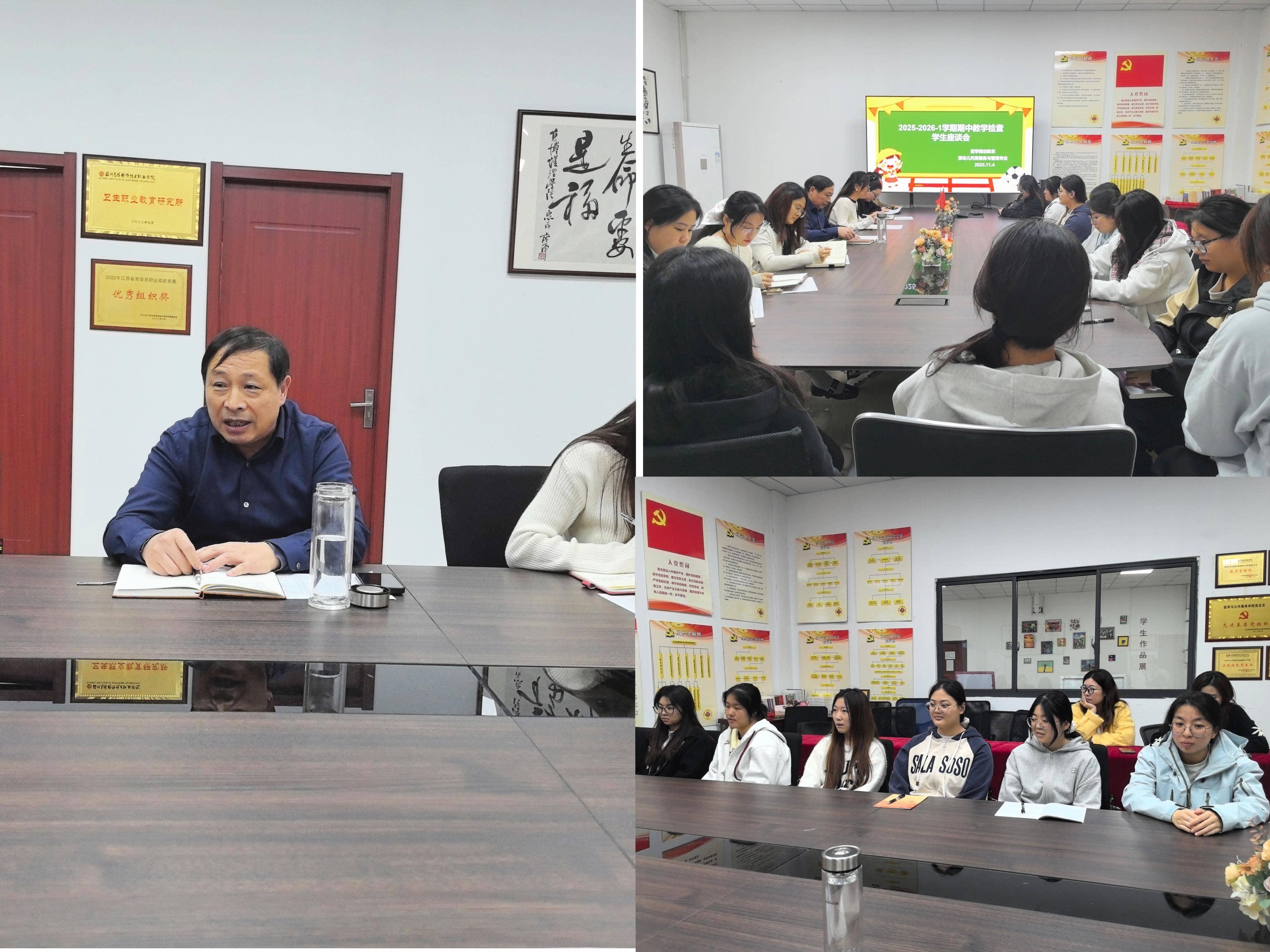 11月5日,我院婴幼儿托育服务与管理专业期中教学检查学生代表座谈会在医学院会议室顺利召开。本次座谈会由幼教系系主任张婷主持,托育专业师生代表及医学院副院长刘家秀共同参与,旨在通过师生面对面交流,深入了解教学现状,优化人才培养方案。