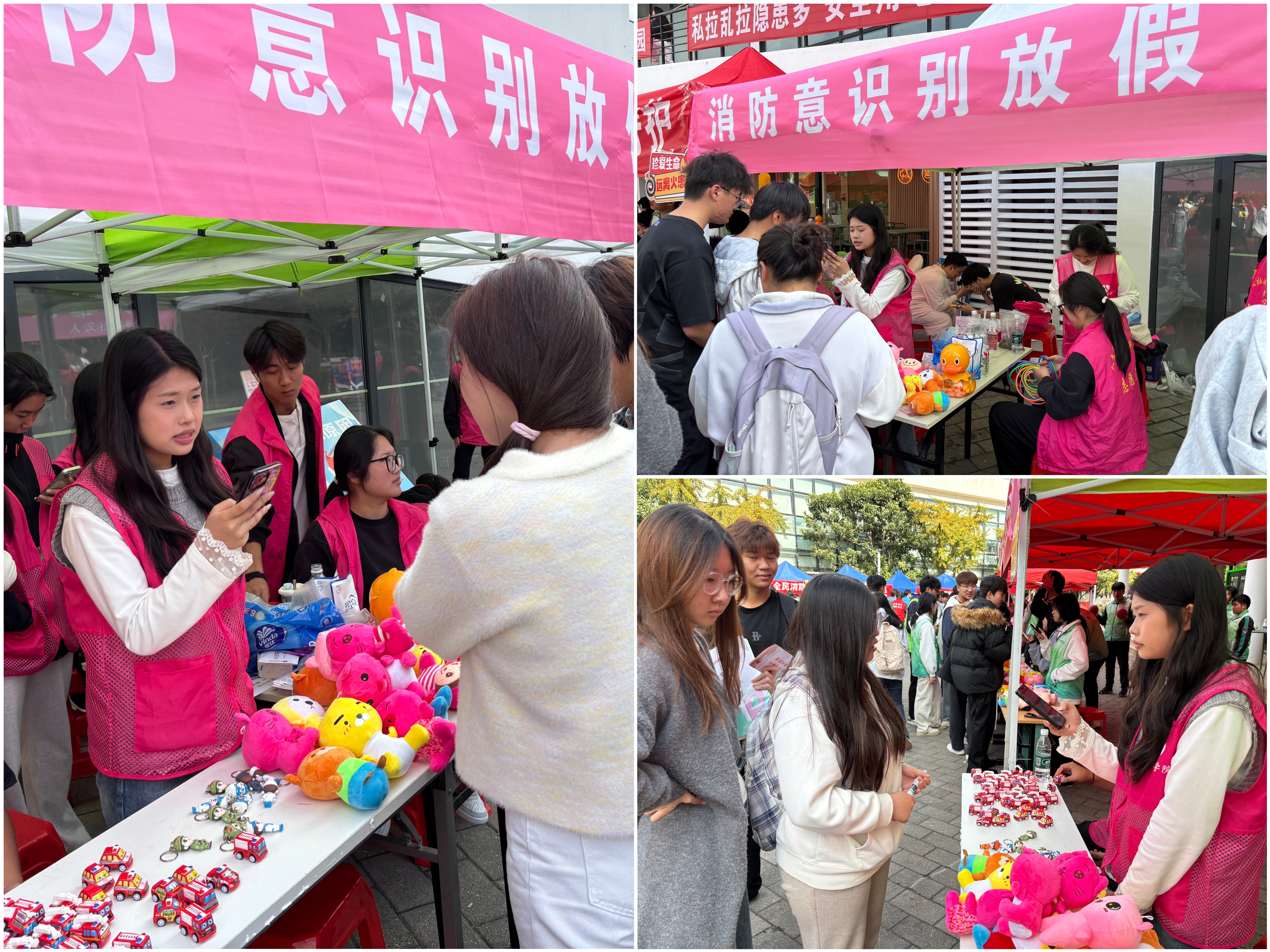 此外,志愿者们还在宣传区域设置咨询台,摆放消防科普海报,发放宣传手册,针对师生关心的日常防火、应急处置等问题逐一解答。大家在参与套圈游戏后,纷纷驻足咨询交流,分享参与心得,在轻松愉悦的氛围中深化对消防安全知识的理解与记忆。