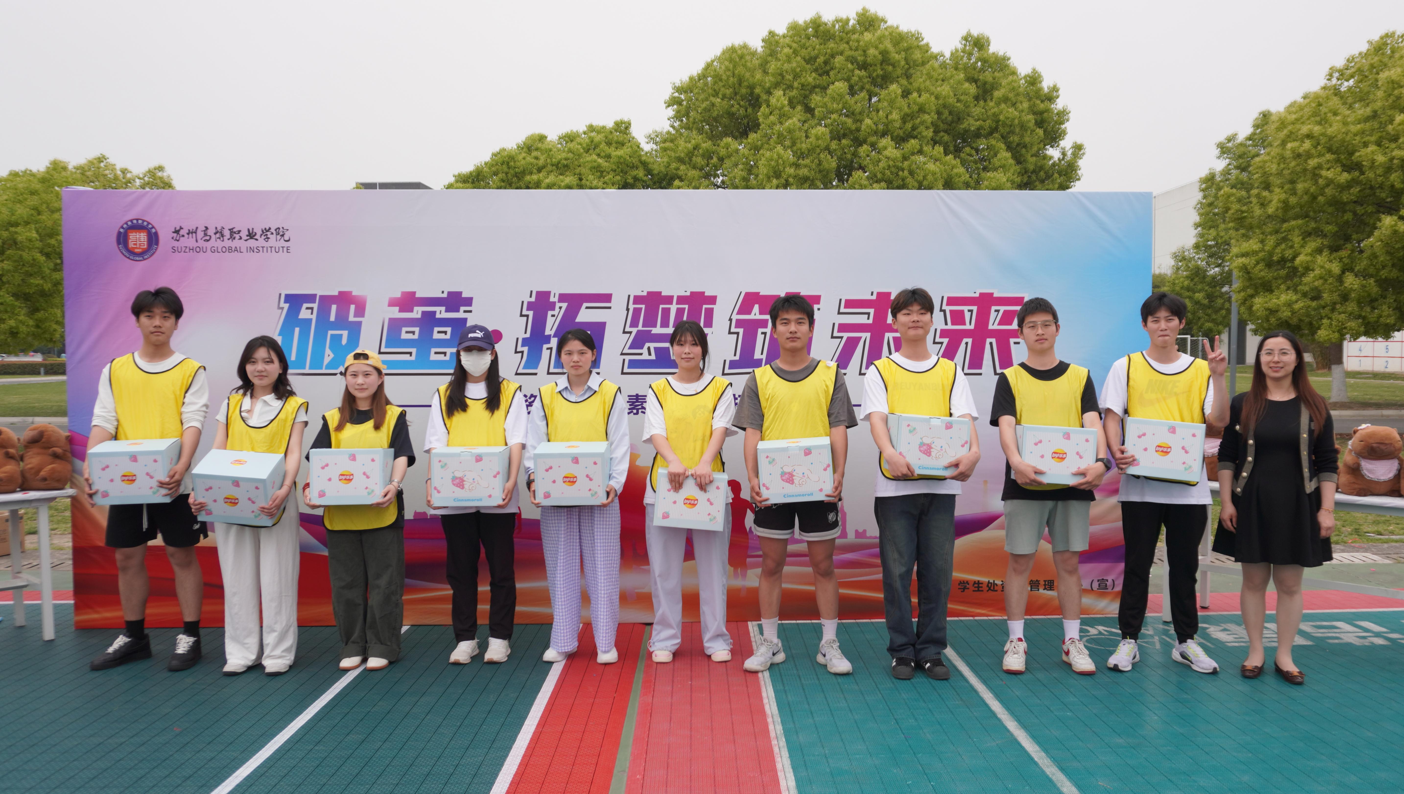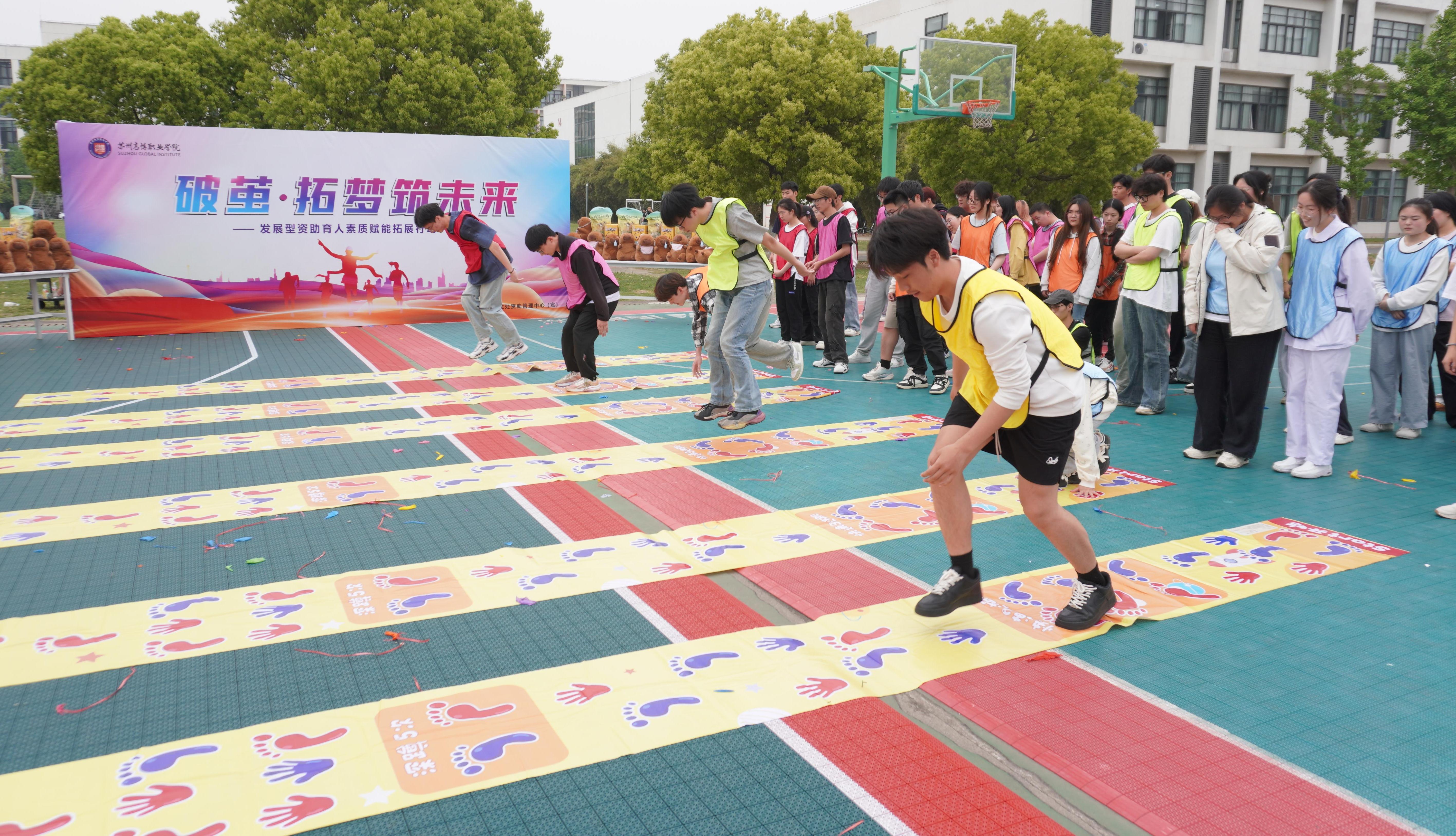 4月24日下午,学生处资助管理中心在校内体育场参加了一场素质拓展系列活动,学生处处长邹艳星、副处长周萍、各二级学院资助负责老师及60名受助学生代表一同参加。