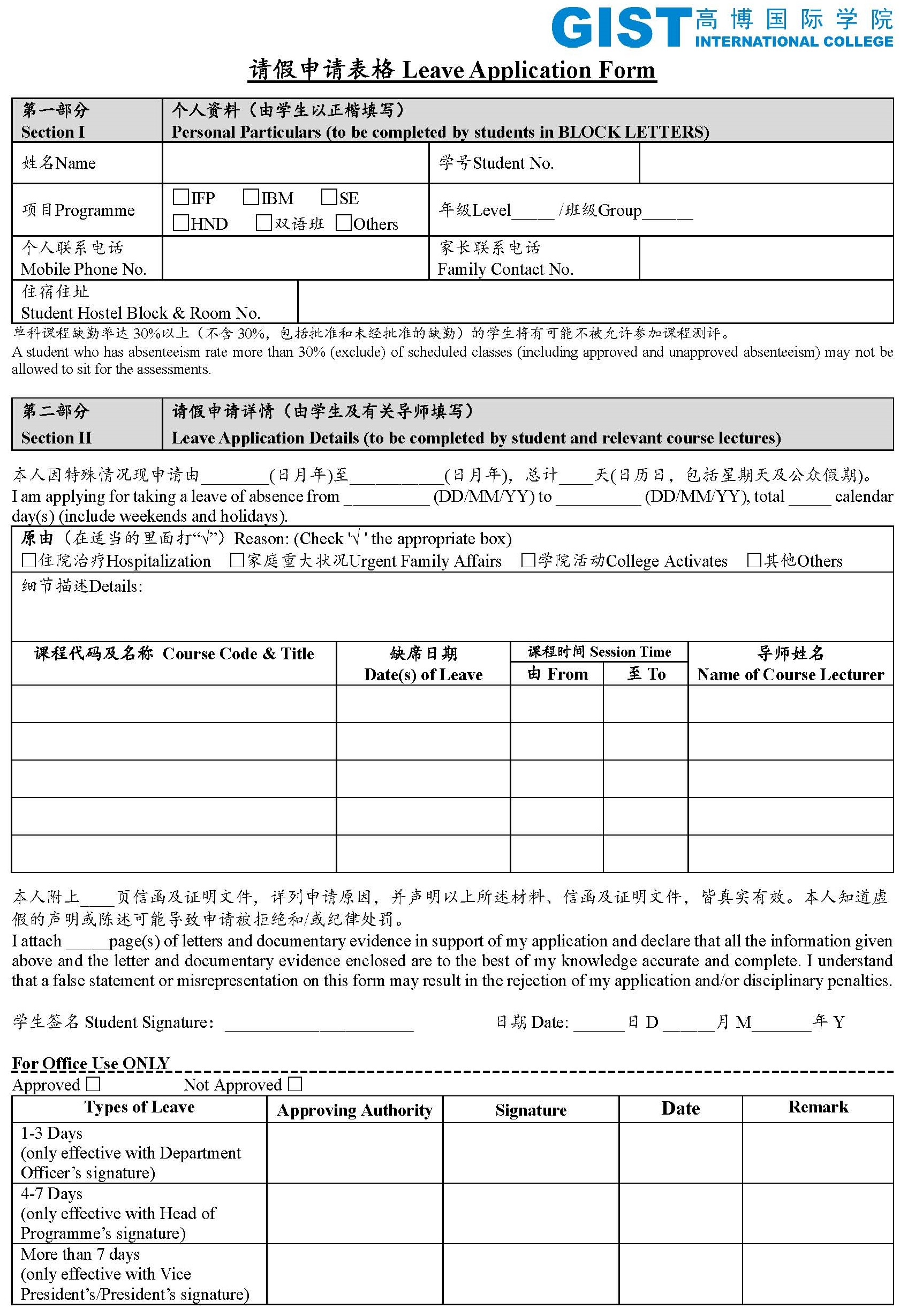 Student Name: | Enrolled Programme: IBM Level _____ IFP Group_____ HND Level _____ Group_____ GIST Year_____ Group_____ SE Level _____ Others: _________________ | |