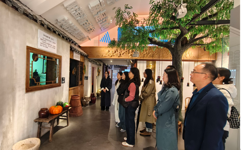 在传统农具展陈区,犁、耙、水车、镰刀等农具整齐排列,部分农具旁还配有动态演示视频,清晰展示着它们的使用方法。此外,仓坊内涵盖蓝印花布艺术馆、蟋蟀盆制作等非遗体验项目的区域,也让大家感受到传统文化的魅力。