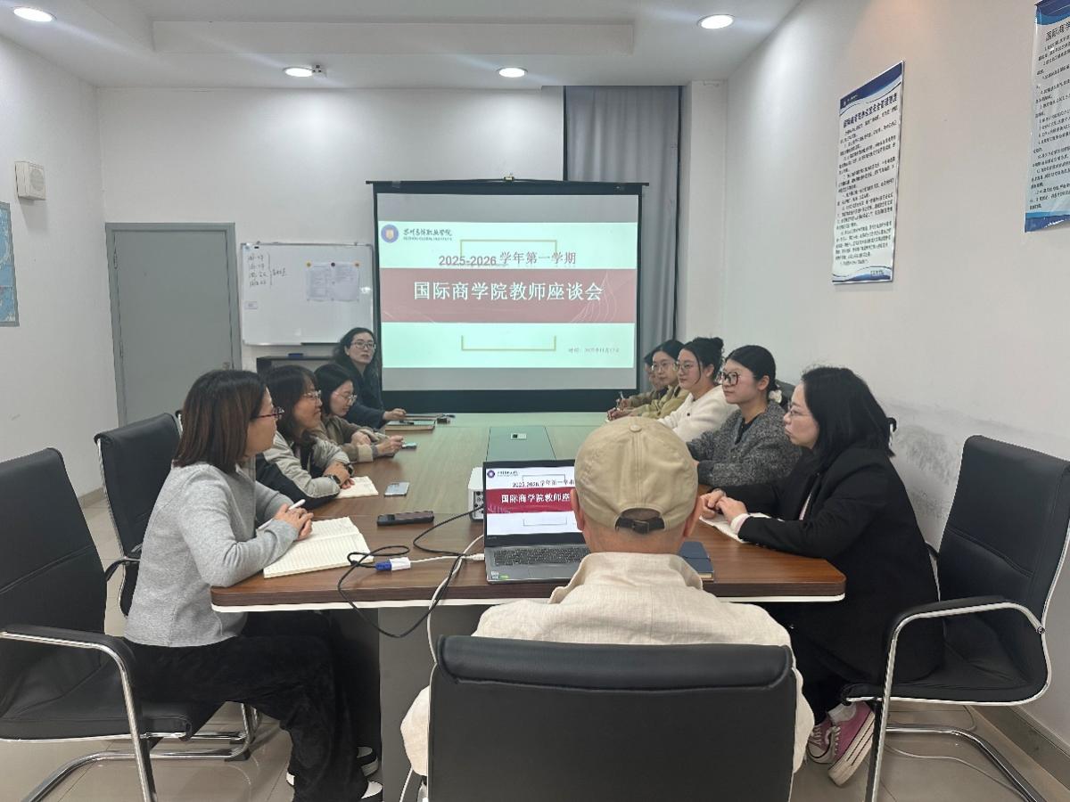 2025年11月12日下午,为进一步提升教育教学质量,全面掌握教师在教学过程中面临的实际困难,落实学校期中教学检查工作要求,国际商学院在行政楼217办公室召开教师座谈会。会议由学院教学副院长牛伟主持,学院院长、教学副院长、各专业负责人及新教师代表共同参会,围绕教学实践中的重点、难点问题展开深入交流。