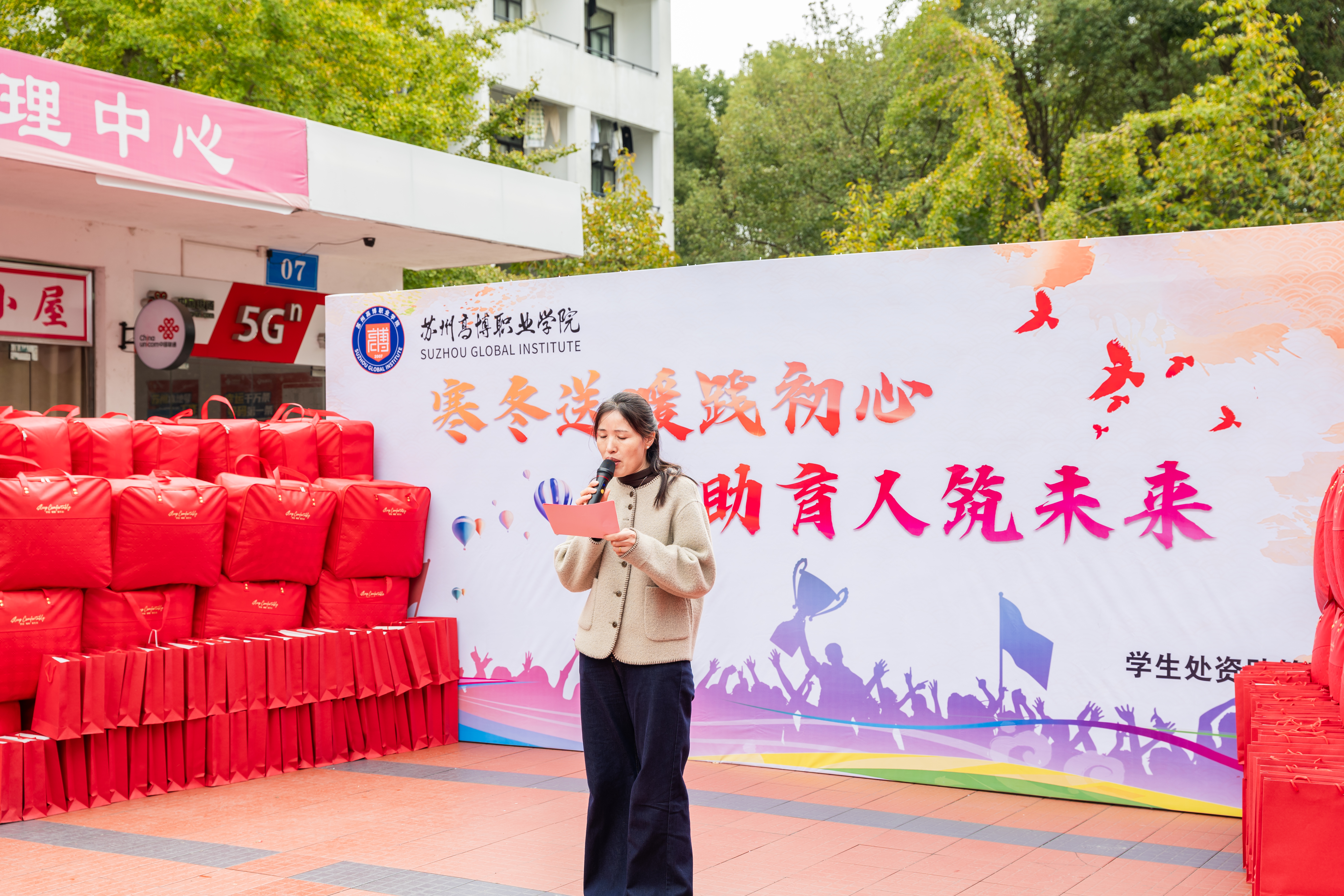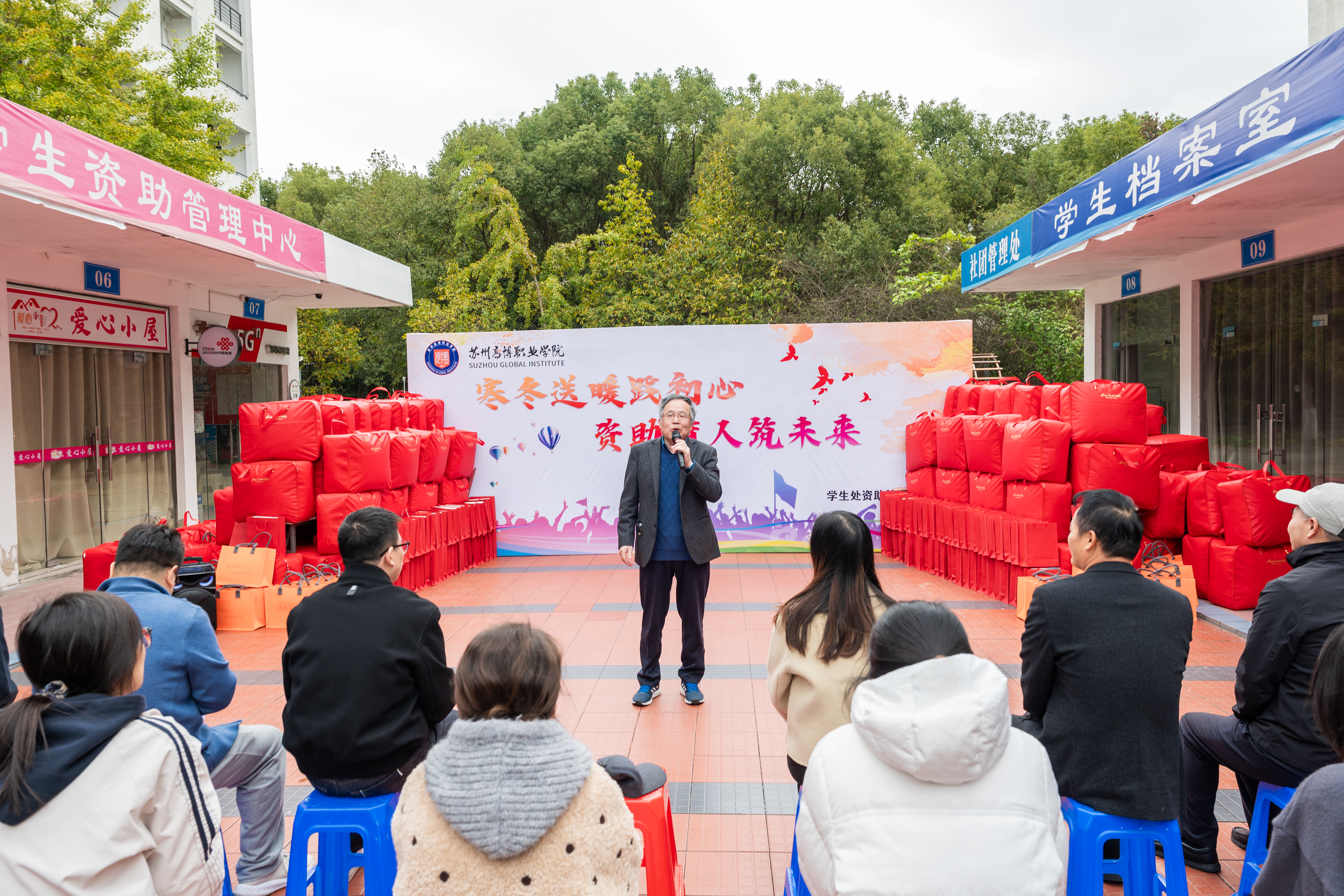 凛冬已至,暖意盈校。为切实筑牢家庭经济困难学生帮扶防线,将“资助育人”理念落到实处,11月17日上午,我校在爱心小屋广场开展了“寒冬送暖践初心,资助育人筑未来”主题慰问活动,校党委副书记、副校长、校关工委常务副主任徐子良教授,学生工作处处长、校关工委秘书长邹艳星,学生工作处副处长周萍,各二级学院党总支副书记、资助负责老师,学生资助管理中心老师及各学院受助学生代表共同参与活动,将满载关怀的御寒“暖心包”精准送达困难学生手中。