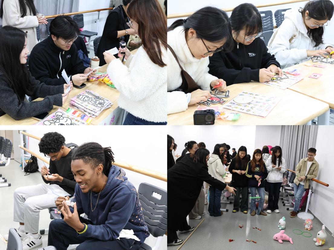 演出结束后,刘洋老师宣布本次游园会正式开幕。本次游园会精心设置了五大互动体验区,分别是“音画工坊”、“单词建筑师”、“诗情画意”、“巧手连珠”和“幸运环游”。各区域均吸引大量学生驻足参与,同学们在轻松愉快的氛围中锻炼了语言应用能力,深刻感受到了世界文化的多样魅力。