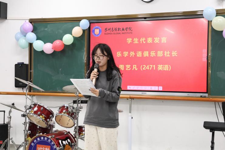 乐学外语俱乐部社长周艺凡同学作为学生代表发言,她分享了自己在外语学习与社团活动中的成长感悟,号召同学们珍惜外语文化节带来的交流机会,勇敢展示自我,在多元文化的舞台上发光发热。
