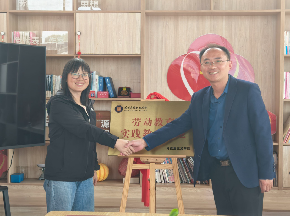 随后,吴歧范与林亚萍共同为“苏州高博职业学院劳动教育实践基地”揭牌。