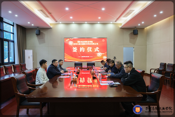 11月24日下午,学校与苏州大域无疆航空科技有限公司正式签署合作协议,仪式在学校行政楼会议室举行。公司董事长周海波、总经理田超、培训经理李鹏鹏;学校副校长邹学海,机电工程学院院长郭旭红、副院长张茂青、无人机应用技术专业教研室主任顾诚共同见证这一重要时刻。签约仪式由发展办公室主任马浩主持。