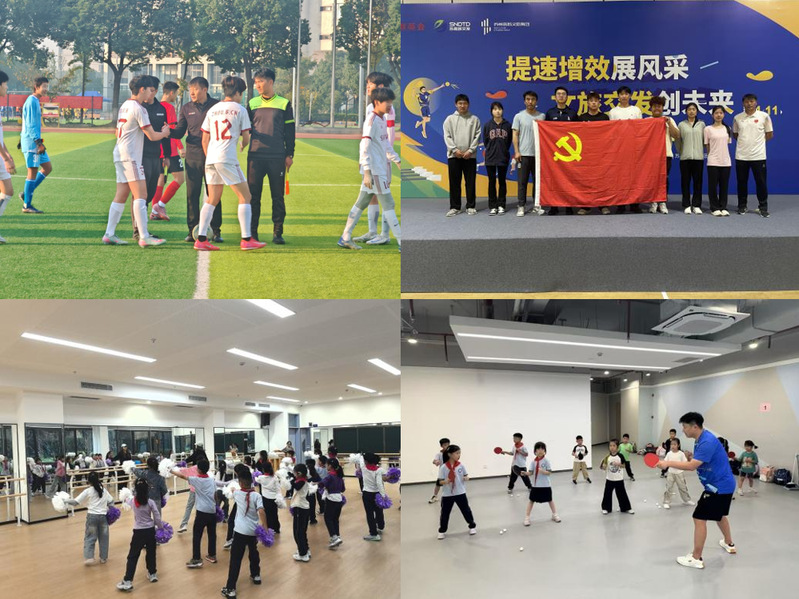 本次系列活动紧密结合各专业特点,精准对接社会需求。在体育专业领域,支部党员教师率先垂范,带领学生深入校园、社区及企业,广泛开展体育赛事组织与健身指导服务。党员教师谢媔媔长期在苏州科技城实验小学玉屏校区担任社团啦啦操教练,党员教师程叶则在该校长期负责校队乒乓球训练,为青少年体育启蒙与技能提升倾注心血。党员教师吴邦智多次执裁市级高水平篮球赛事,展现了专业的裁判素养。在已落幕的2025年苏州市“市长杯”初中女子组足球总决赛中,党员教师赵明旭带领休闲体育专业学生李健杰以裁判身份全程参与,李健杰同学更凭借出色表现荣获“最佳裁判员”称号,赵明旭老师亦在其他多项青少年足球赛事中承担裁判工作。此外,体育组朱柯老师走进常熟市碧溪中心小学,通过趣味武术教学让千余名学生领略了传统体育的魅力。党支部张赞书记更亲自带队,联合程叶、吴邦智、赵明旭等老师及休闲体育专业学生,为苏高新集团成功组织了篮球、羽毛球、乒乓球等系列赛事,志愿服务获得了主办方的高度认可。