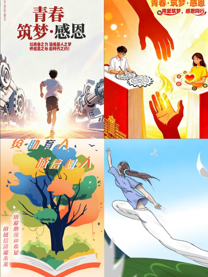 海报作品征集则成为同学们创意比拼的舞台。大家充分发挥专业特长,将机械设计、工程美学等元素融入创作中,通过鲜明的色彩、生动的图案和凝练的文字,直观呈现“青春·筑梦·感恩”的主题。一幅幅海报设计新颖、寓意深刻,展现了机电学子的创新思维与艺术素养。