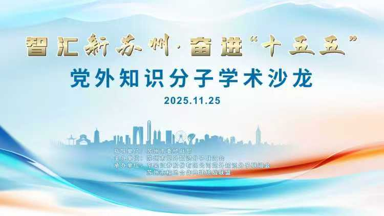 11月25日,由苏州市知联会主办的“智汇新苏州·奋进‘十五五’”党外知识分子学术沙龙在东吴证券总部大楼圆满举行。本次沙龙旨在汇聚全市党外知识分子的智慧与力量,为科学规划苏州“十五五”时期的高质量发展建言献策。市政协副主席、市知联会会长李赞,市委统战部常务副部长王燕红,市委宣传部副部长杨芳,市国资委副主任殷卫中以及在苏州高校、市属国企等单位有关负责同志出席活动。我校党工部副部长程前、知联会会长龚三琼和入选论文集的两位作者机电工程学院胡诚和国际商学院张慧老师参加了此次学术沙龙活动。