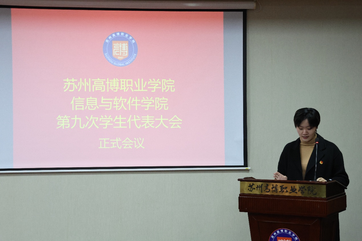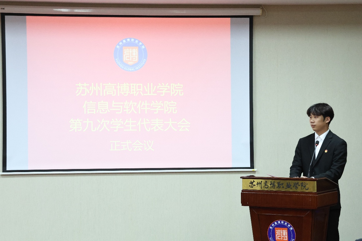大会开始,学院执行主席厉泽霖上台宣读《苏州高博职业学院信息与软件学院第九次学代会选举办法(草案)》,全面规定了选举流程公平、公正、公开的原则,也详细说明了选举前、选举中、选举后三个阶段的事务流程,进一步调动了全体代表的积极性,为接下来的选举工作揭开序幕。