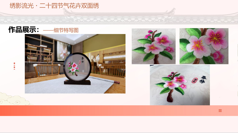 医学院始终高度重视美育教育与非遗文化的传承创新,将非遗育人融入实践教学体系,依托“党建+非遗”卢福英专家工作室平台,开设苏绣公选课,为师生搭建了非遗学习与创作的优质平台。此次获奖作品《绣影流光・二十四节气花卉双面绣》,以传统双面绣技艺为载体,巧妙融合二十四节气的文化内涵与花卉元素,不仅展现了学子们扎实的手工创作功底,更彰显了青年学子对非遗文化的深刻理解与创新表达,是学院非遗育人成果的生动体现。