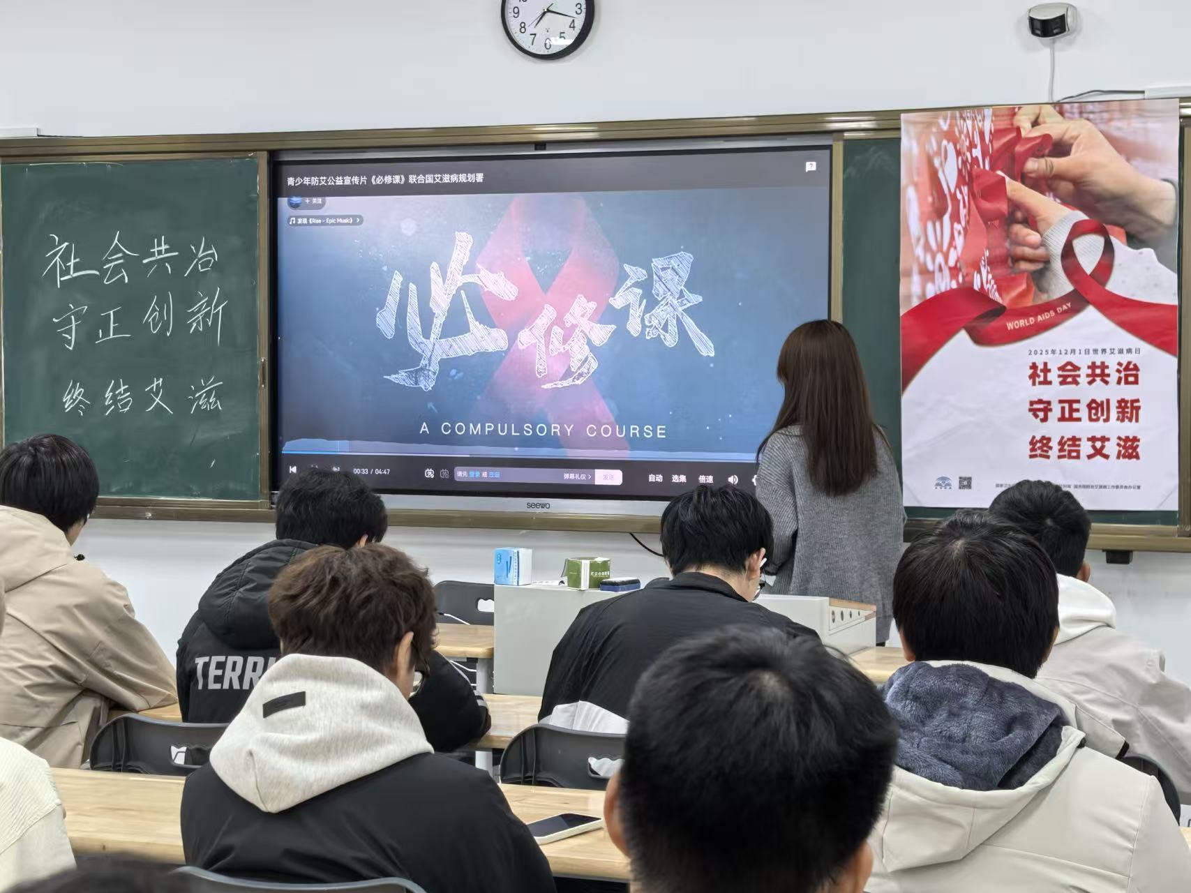 此外,大一各班级还陆续组织了“社会共治,守正创新,终结艾滋”主题班会。班会上,同学们通过案例讨论、政策学习等形式,深刻理解了防艾工作的重要性与时代责任,坚定了作为新时代青年在终结艾滋病流行战役中的使命与担当。
