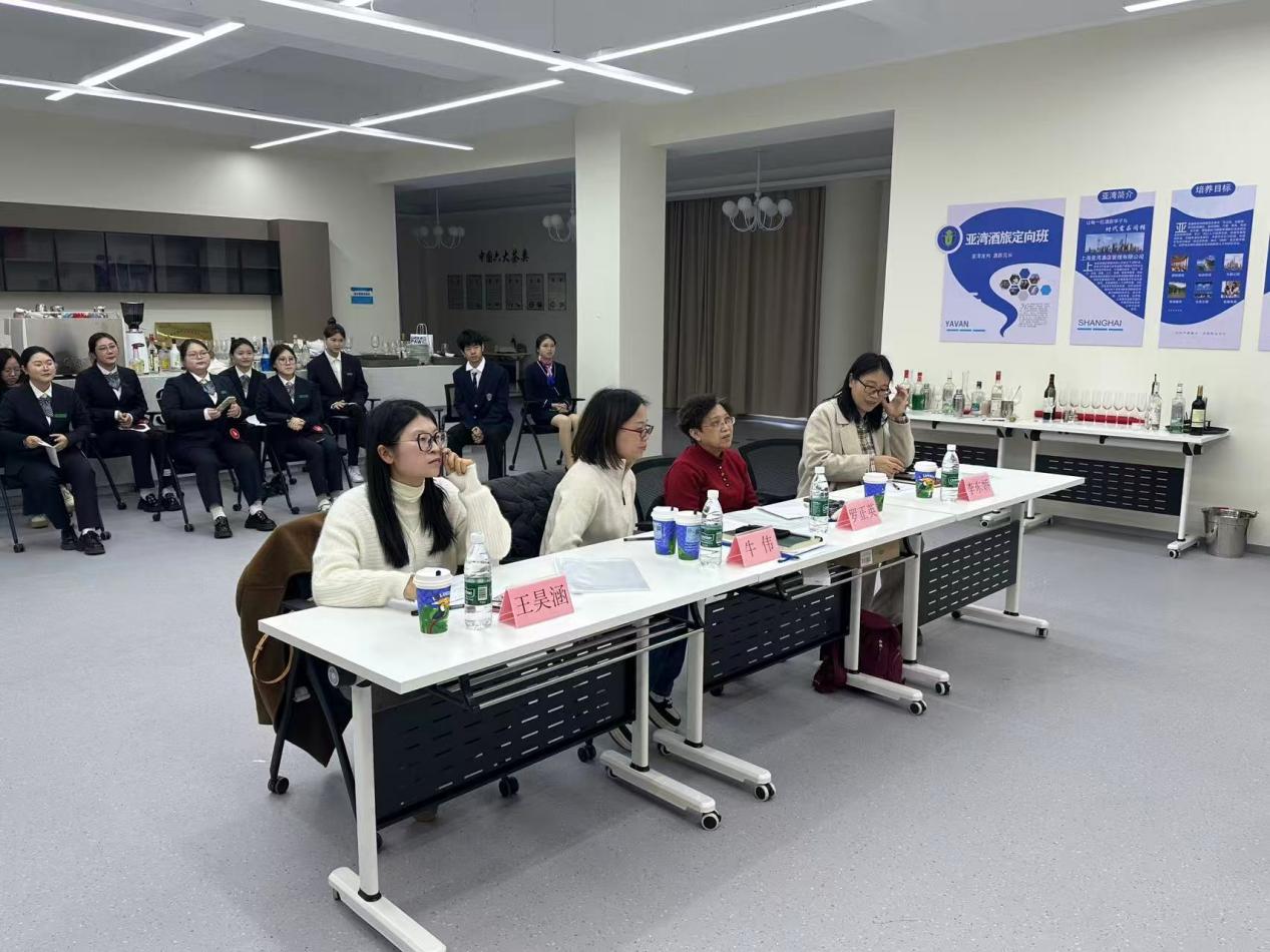 本次决赛在12-214酒旅实训室隆重举办,并邀请了国际商学院副院长牛伟、社会服务系主任罗正英、社会服务系副主任王昊涵领衔和骨干教师李东娇参与组成评审团,从专业深度、现场表达、临场应变等多维度进行综合考评,确保评审的权威性与公正性。