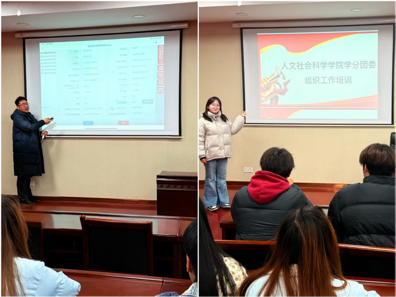 近日,人文社会科学学院分团委(学生会)组织部成功举办团务工作专题培训,旨在规范团务工作流程,提升组织部成员及各班团支书的业务能力与综合素质,保障各项团学工作高效有序开展。本次培训由我院分团委学生副书记邹洋洋主讲,分团委书记吴敬德全程指导,组织部全体成员及各班团支书共同参与,以系统授课与实操演练相结合的方式,为学院团学工作高质量推进筑牢基础。