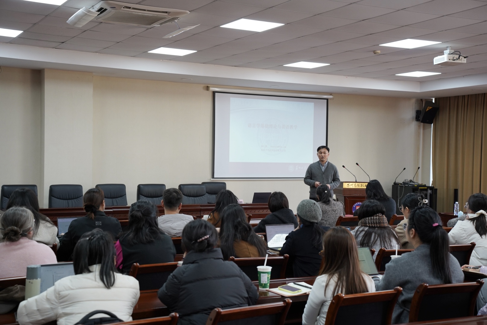 为全面提升教师的学术科研能力,促进教师个人发展,12月9日下午,人文社会科学学院“师路同行”教师发展沙龙举办活动,邀请苏州大学外国语学院张大群教授作了题为“语言学基础理论与英语教学”的学术讲座。本次讲座由学院副院长兼外语系主任马亚丽主持,校一级督导洪庆福教授以及外语系全体教师参加了讲座。