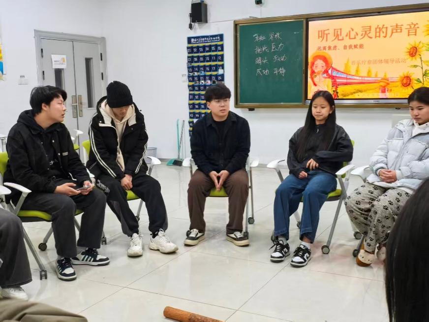 为普及心理健康知识,引导学生运用多元方式舒缓压力、关照内心,12月7日晚,国际商学院“听见心灵的声音”音乐疗愈团体辅导活动在32-201教室温馨开展。本次活动由学院心理辅导员、青林心理工作室成员马俊涛老师带领,吸引了来自全校各学院的三十余名学生积极参与。