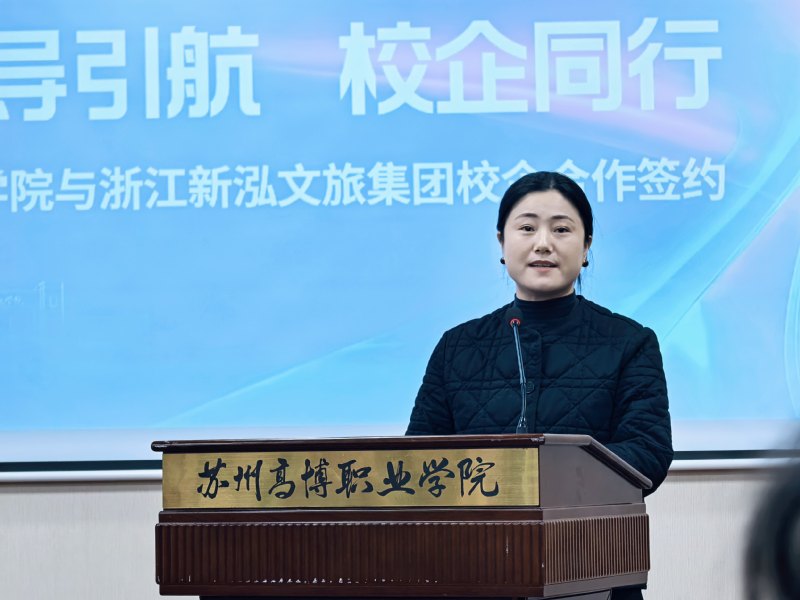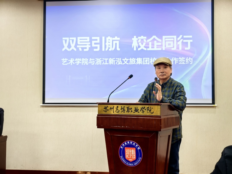 12月11日下午,苏州高博职业学院艺术学院与浙江新泓文旅集团在学校215报告厅隆重举行“双导引航 校企同行”合作签约暨融媒实战项目启动仪式。双方将围绕融媒体技术与运营专业建设,以“校企双导 +项目淬炼 + AI赋能”为核心路径,推动人才培养与产业需求精准对接,开启协同育人新篇章。