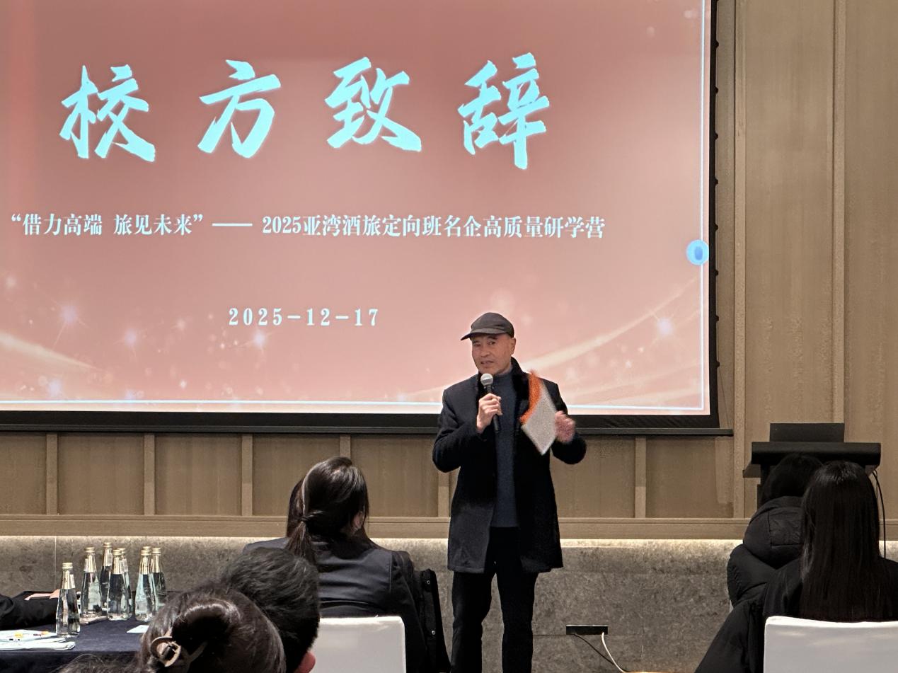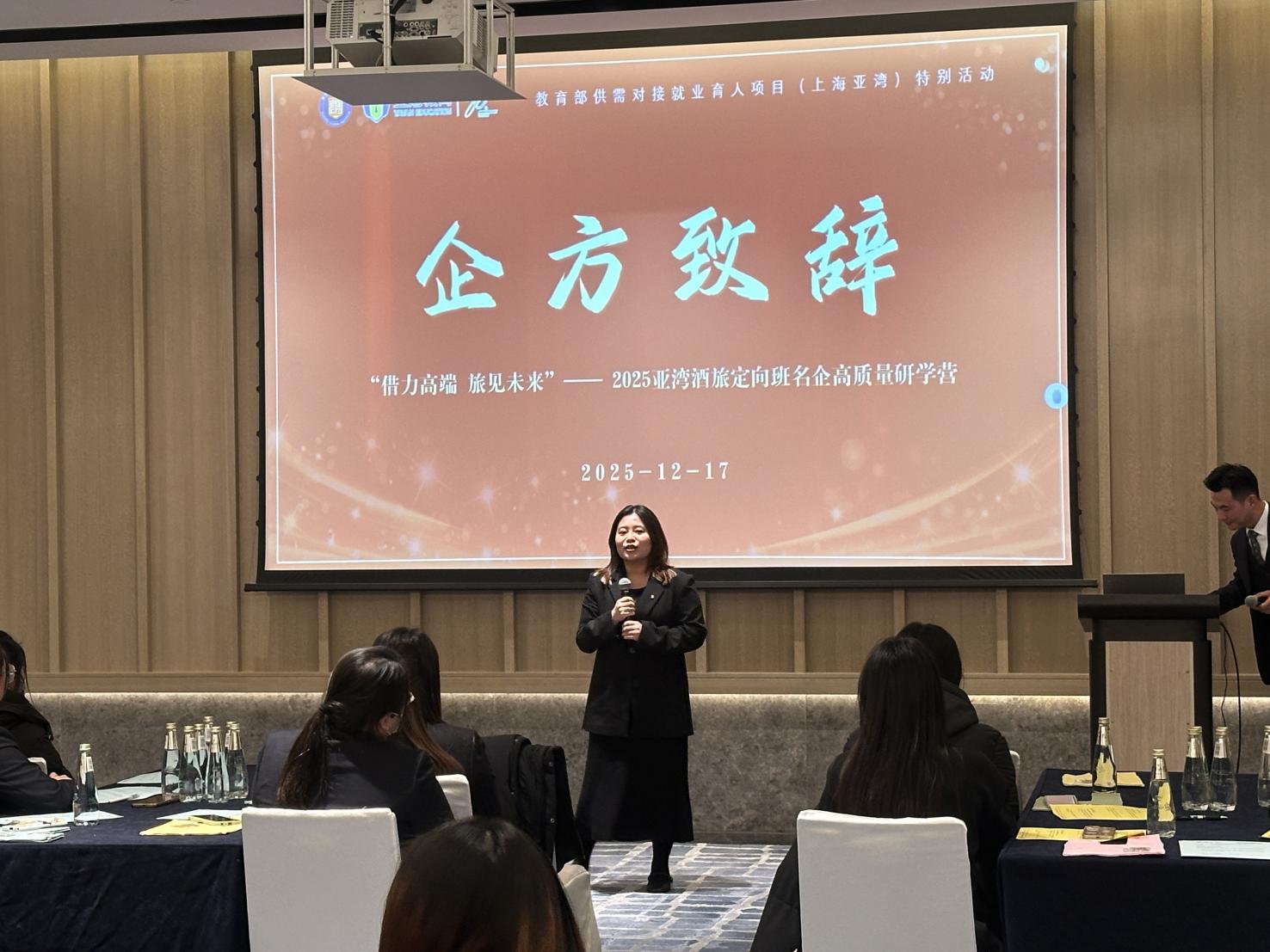 冬日沪上,浦江潮涌,酒旅行业的创新活力与城市底蕴交相辉映。12月17日,苏州高博职业学院携手上海亚湾酒店管理有限公司打造的 “借力高端 旅见未来”2025亚湾酒旅定向班研学营圆满收官。这场为期一日的沉浸式研学,是学校深化 “知行合一、产教融合” 育人理念的生动实践,更是为酒旅专业学子搭建的 “课堂对接行业、理论联结实践” 的优质平台,让学子在行走中感知行业脉搏,在体验中明晰成长方向。