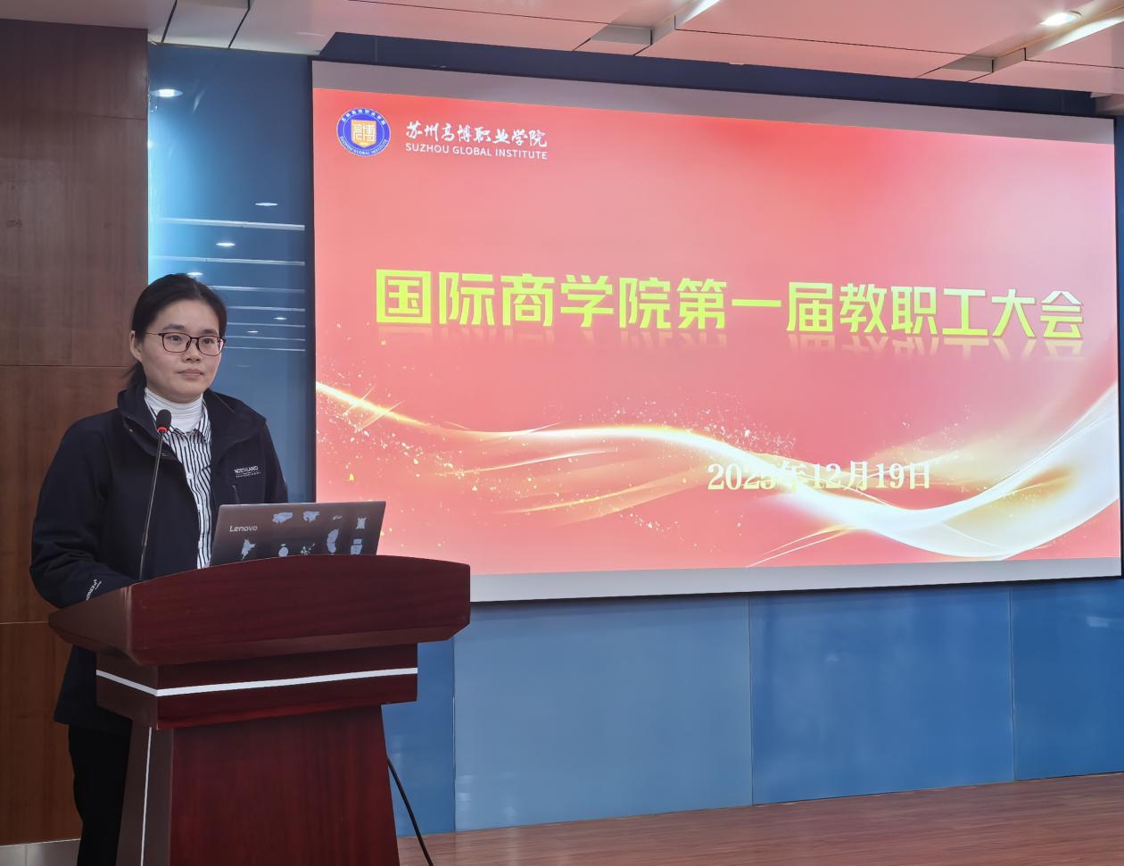 2025年12月19日,我院第一届教职工大会在实训楼15-B201会议室隆重召开。本次大会的主要议题是审议《国际商学院2025年绩效工资分配方案(征求意见稿)》。学院全体教职工齐聚一堂,共同为完善学院内部治理、推动高质量发展建言献策。党总支书记王则斌、院长乔桂明等班子成员出席会议。