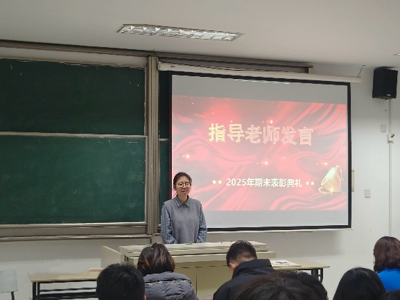 活动在庄严的国歌声中拉开序幕。邵雪娇老师首先致辞,她充分肯定了同学们在2025-2026学年体育文化节球类赛事、趣味运动会及迎新晚会中的出色表现,强调每一份荣誉都源自不懈的汗水与坚持,并鼓励大家将活动中展现的拼搏精神延续到专业学习与个人成长中,实现全面发展。