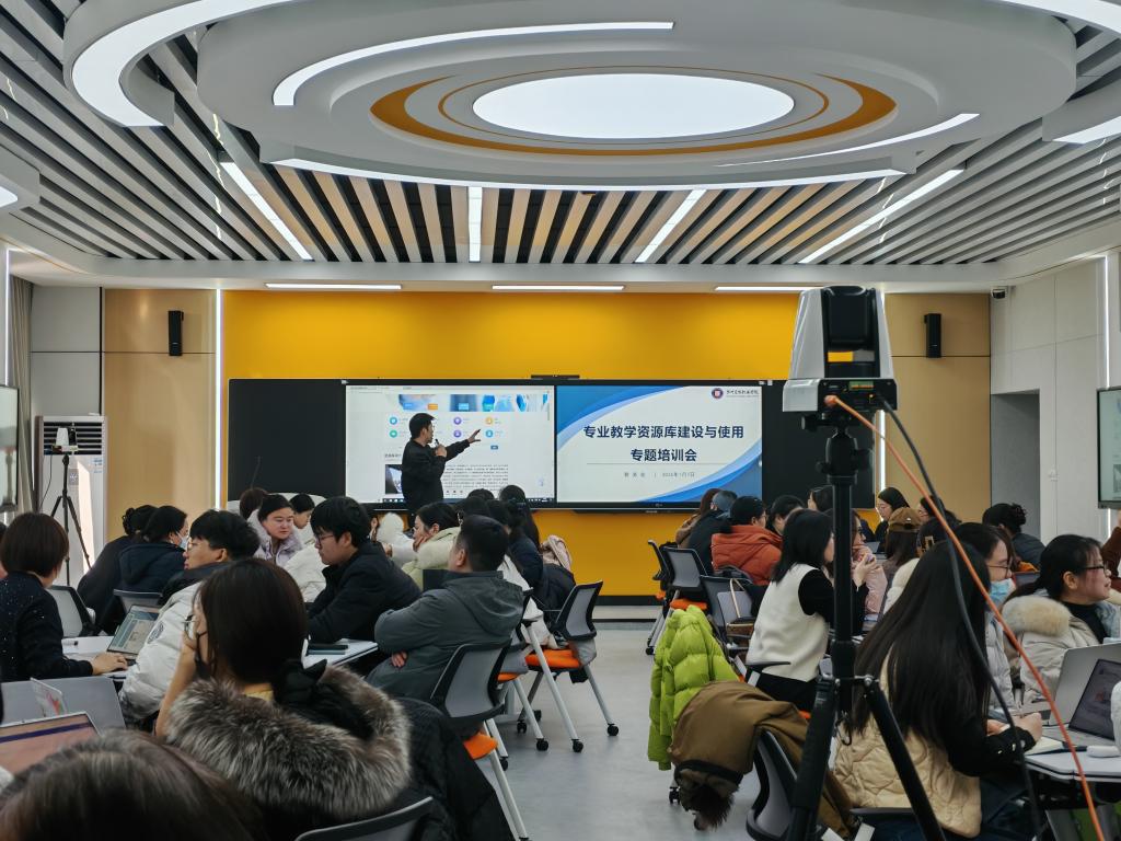 为扎实推进我校首批校级专业教学资源库建设工作,帮助立项团队熟练掌握超星专业教学资源库平台的操作流程、建设规范与应用策略,切实提升资源库建设质量与使用效能,学校于1月7日下午在北校区32号楼306智慧教室成功举办了专业教学资源库建设与使用专题培训会。本次培训特邀请超星公司培训师李小龙、王甜甜老师主讲,项目负责人、团队成员及教务处相关人员参加了会议,会议由教务处处长助理顾珏主持。