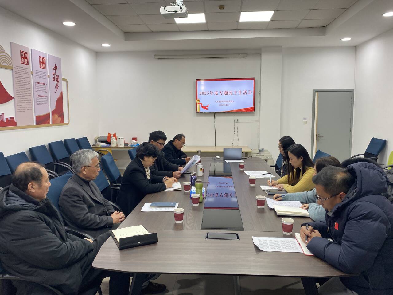 1月9日下午,人文社会科学学院党总支召开2025年度专题民主生活会。副校长王凤英到会指导,学院党政领导班子全体成员参加会议。会议由校长助理、学院党总支书记吴建明主持。