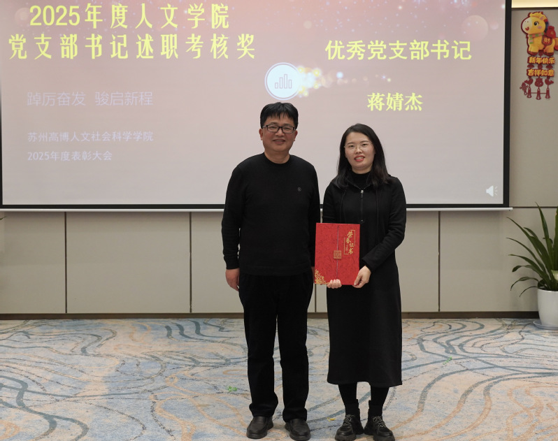 金蛇辞旧岁,骏马踏春来。2026年1月13日,人文社会科学学院在苏州龙之梦会议中心隆重举行新春团拜活动暨2025年度表彰大会。学院党政领导班子成员、全体教职工欢聚一堂,共迎新春,共谋新篇,共话新程。大会以“踔厉奋发,骏启新程”为主题,旨在总结过去、表彰先进、展望未来。大会由学院党总支副书记、副院长赵雪飞主持。