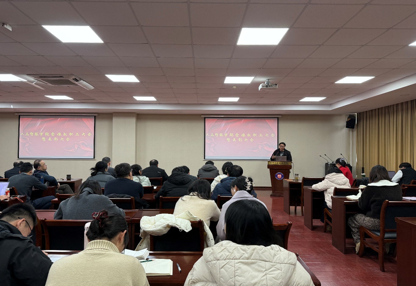 2025年1月13日14:00,苏州高博职业学院人工智能学院全体教职工大会暨表彰大会在行政楼14-215会议室隆重召开。学院全体教职工参会,会议由副院长李月峰主持。